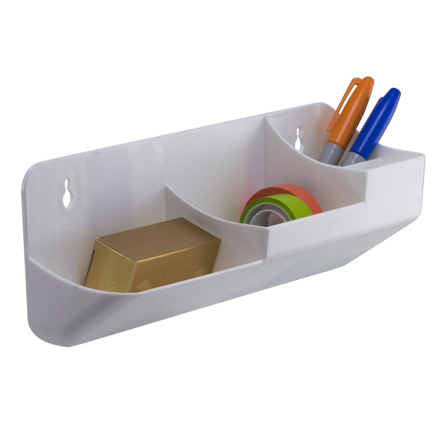 Keep your clips, rubber bands, magnets, push pins and other supplies. Three large compartments. Heavy Duty Magnetic backing. Made in USA. Dimensions WxDxH 30,x7,6x10cm.*Color white.