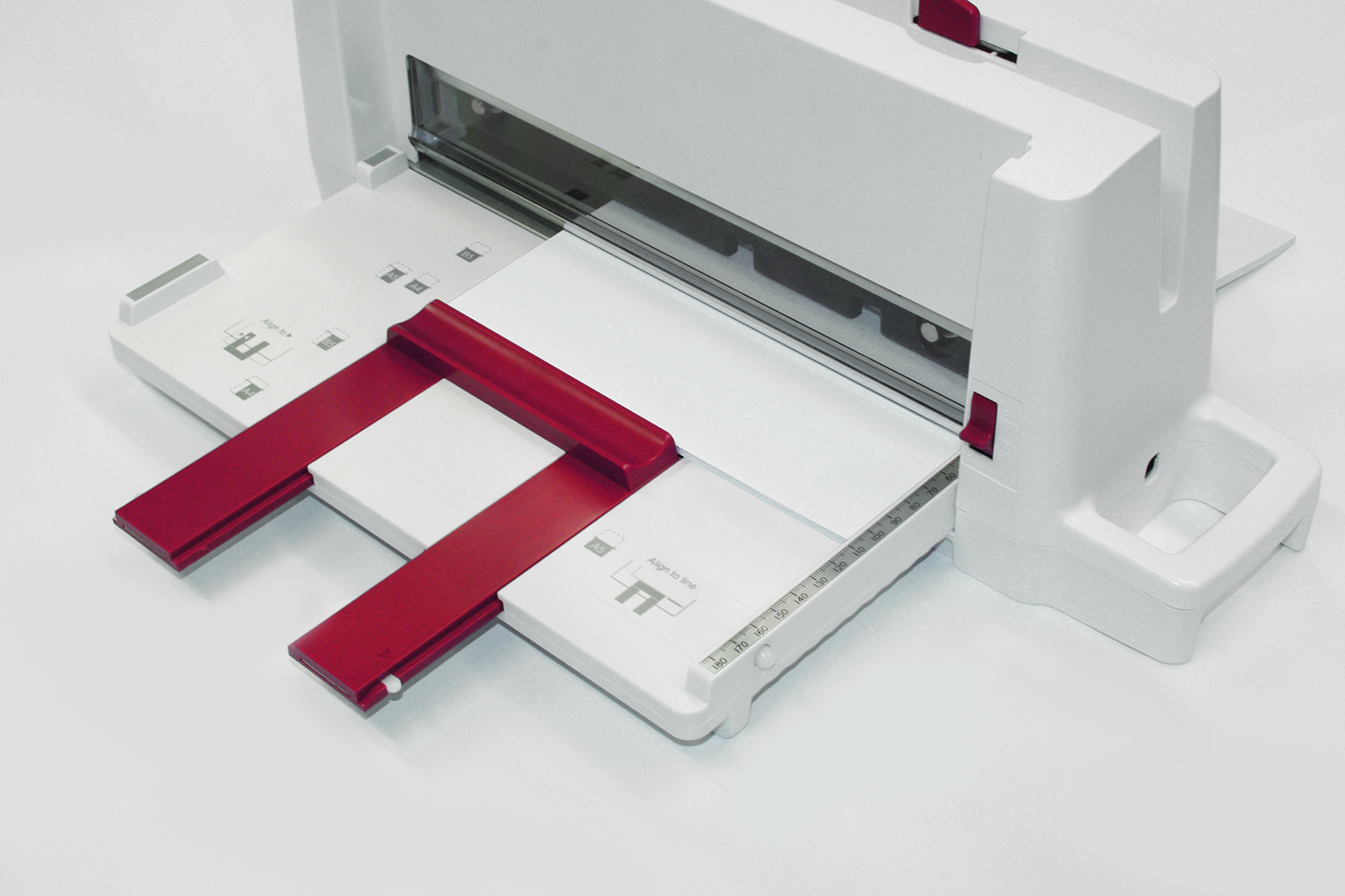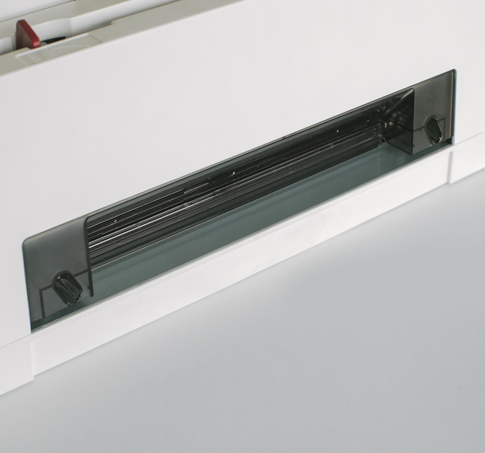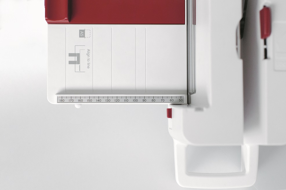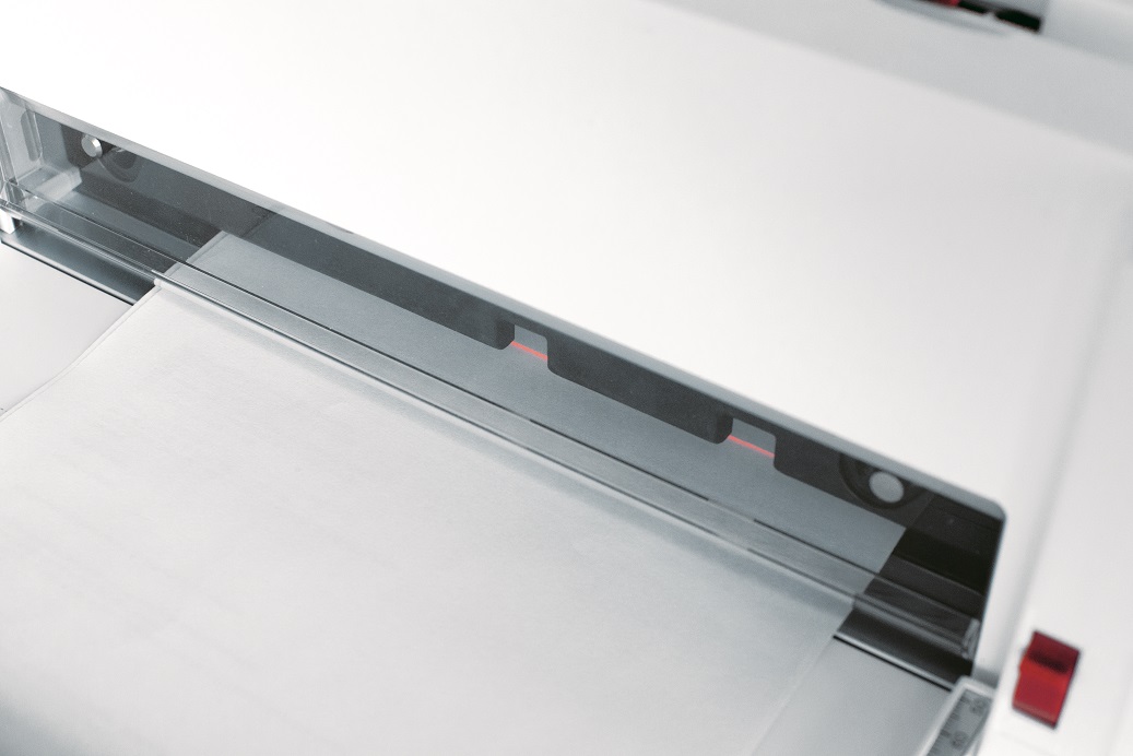 Ultra-compact, portable office guillotine for small formats. Precise cutting of up to 60 sheets (70 g/m2) with little effort. The transparent safety flap in the cutting area serves as a safety guard. LED-cutting line for precise cuts. Double-guided back stop with three ratchet positions (DIN A5, B5, A4) for easy cutting of DIN formats. Millimetre scale. Non-slip rubber feet for stability. Convenient handle for easy transportation. Non operation size H175 x W500 x D115 mm. Operation size : H190 x W500 x D240 mm. Weight : 5,2 kg