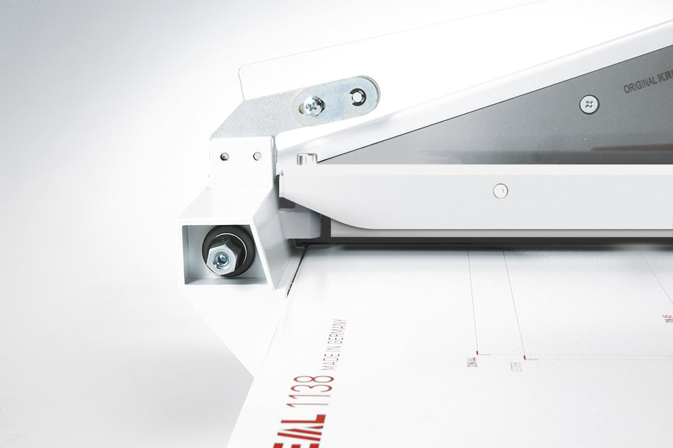 Resharpenable, high-quality blade set made of “Solingen steel”. Automatic safety guard made from transparent, unbreakable plastic material (guard rises and falls with the movement of the blade). Solid manual clamp for variable pressure. Precision side lay with measuring scale (mm/inches) and adjustable backgauge.