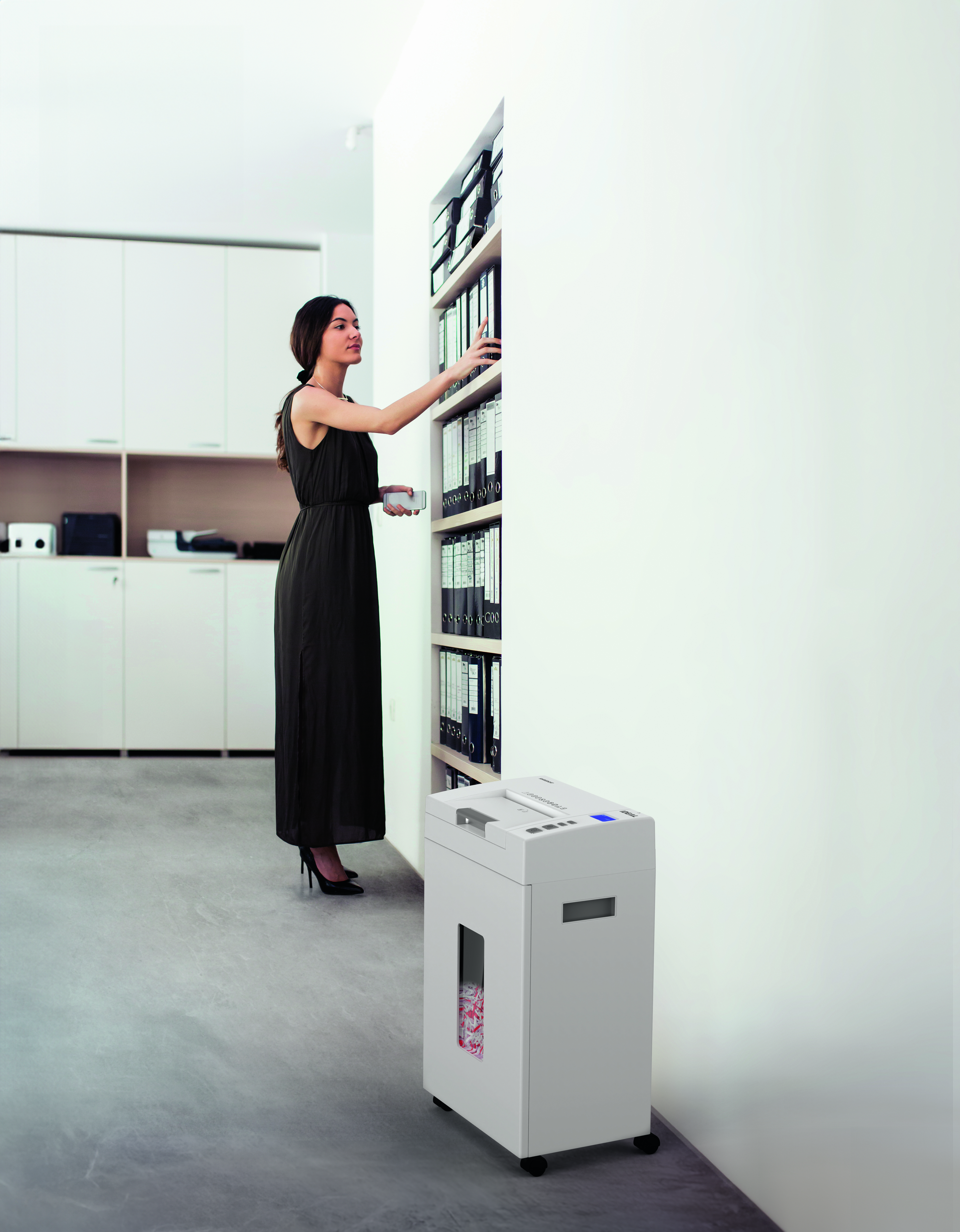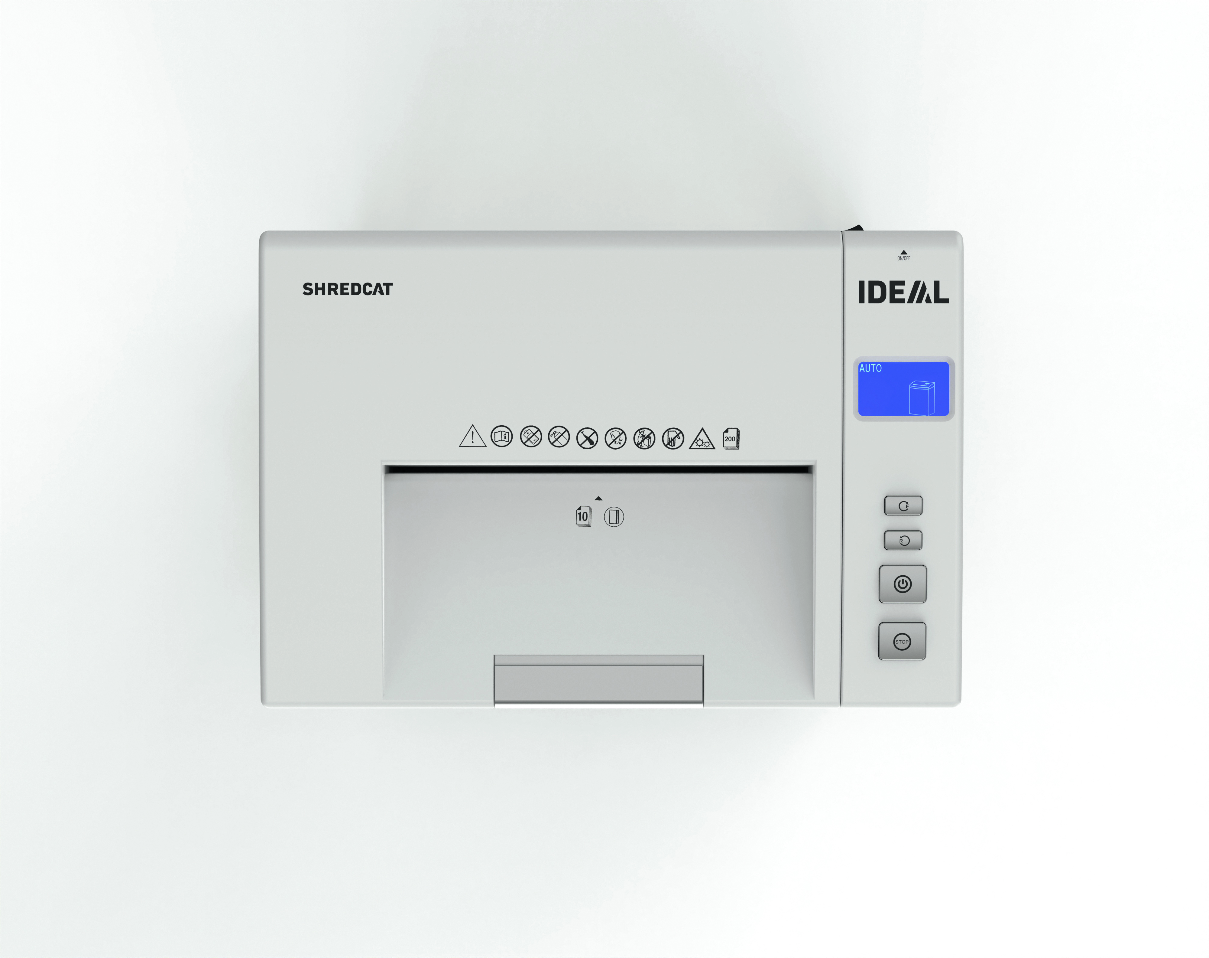 Innovatieve, compacte papierversnipperaar met automatische invoer voor maximaal 200 vellen papier of 10 vellen handmatig.