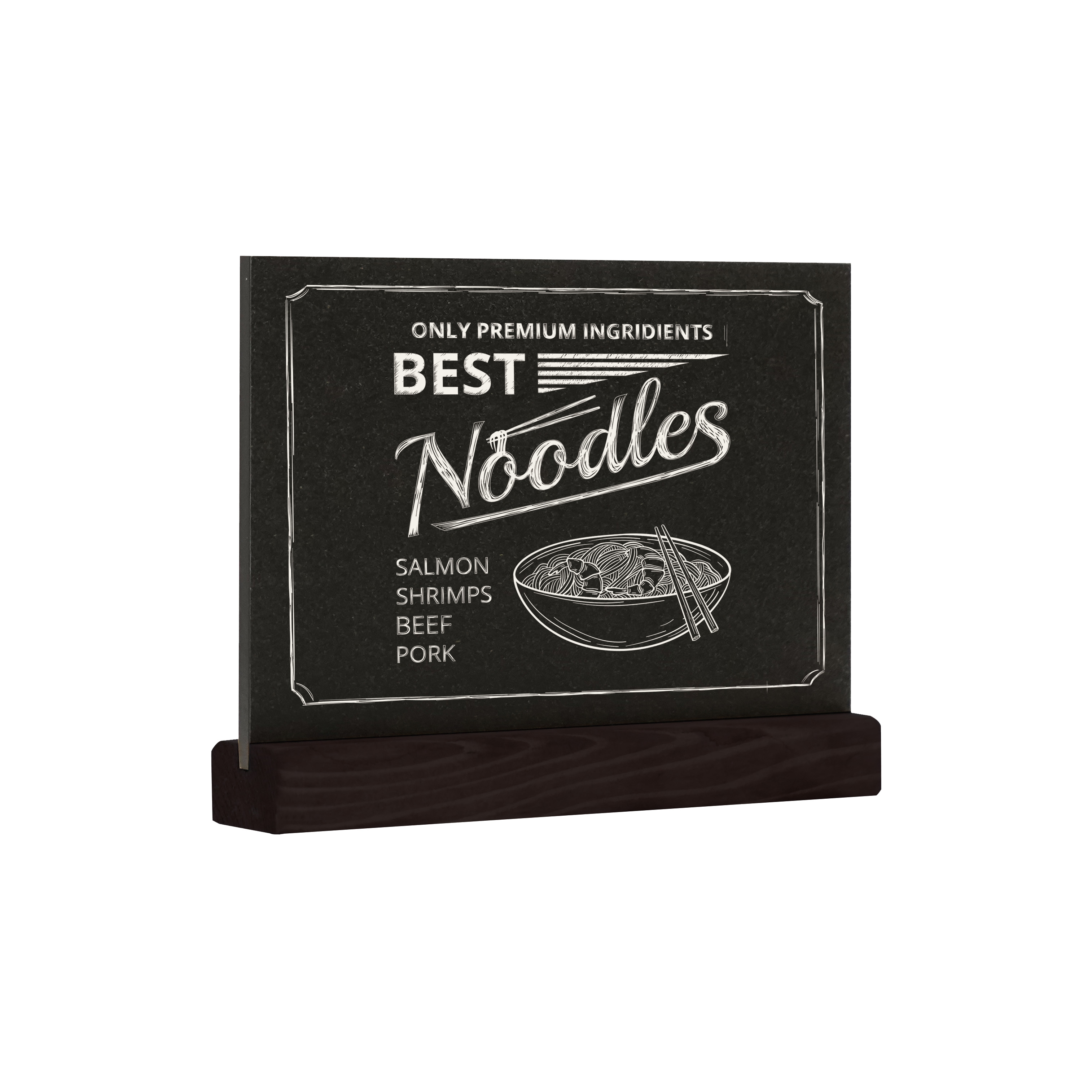 Chalkboard desk top model, with a base of pine wood, matt black finish. Suitable for water-based chalk markers. (Not for blackboard chalk). Maximum visibility through the two-sided presentation.