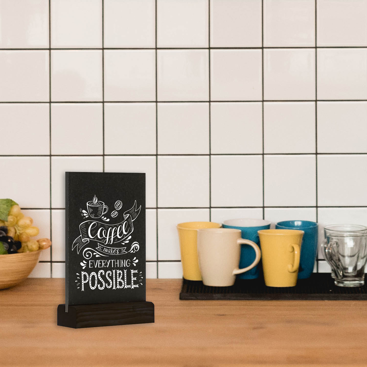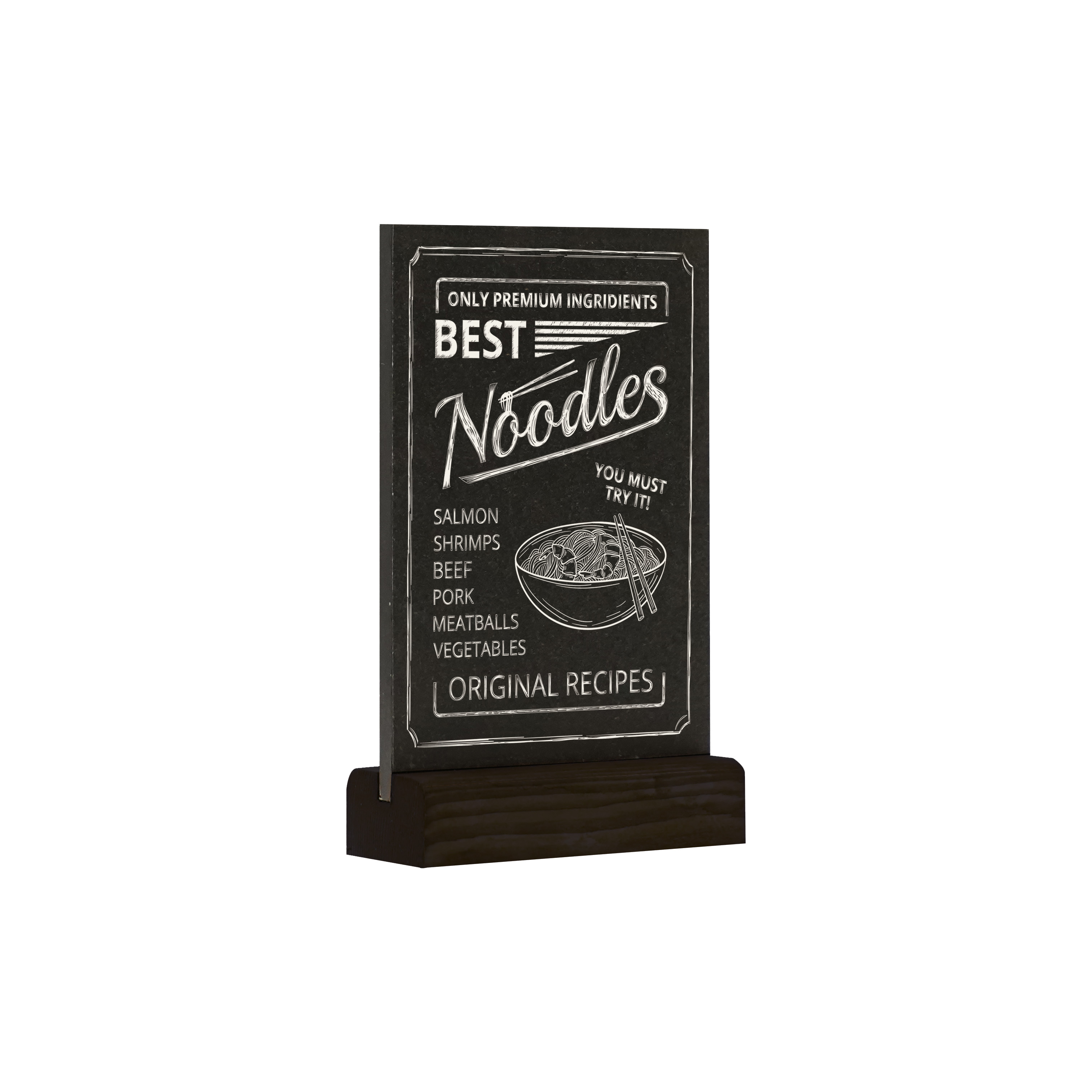 Chalkboard desk top model, with a base of pine wood, matt black finish. Suitable for water-based chalk markers. (Not for blackboard chalk). Maximum visibility through the two-sided presentation.