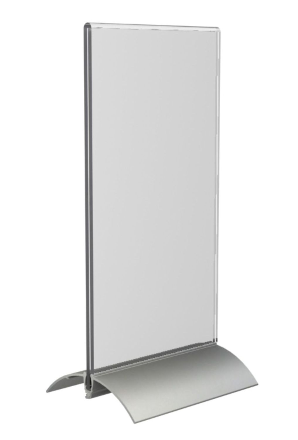This Europel Sign Holder with Aluminium Base can hold the artwork as a double sided display allowing to have more exposure within your premises. This acrylic point of sale sign can be updated and used regularly because the graphics can easily be slotted into the side of the unit. Natural anodized base for a professional appearance. Material: Clear Acrylic and Silver anodized Aluminium. Size: 1/3 A4. Model: Portrait.