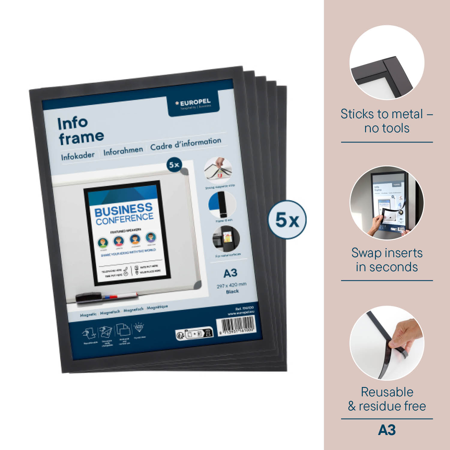 Europel Magnetic Info Frame Set of 5 pcs – A3 Black