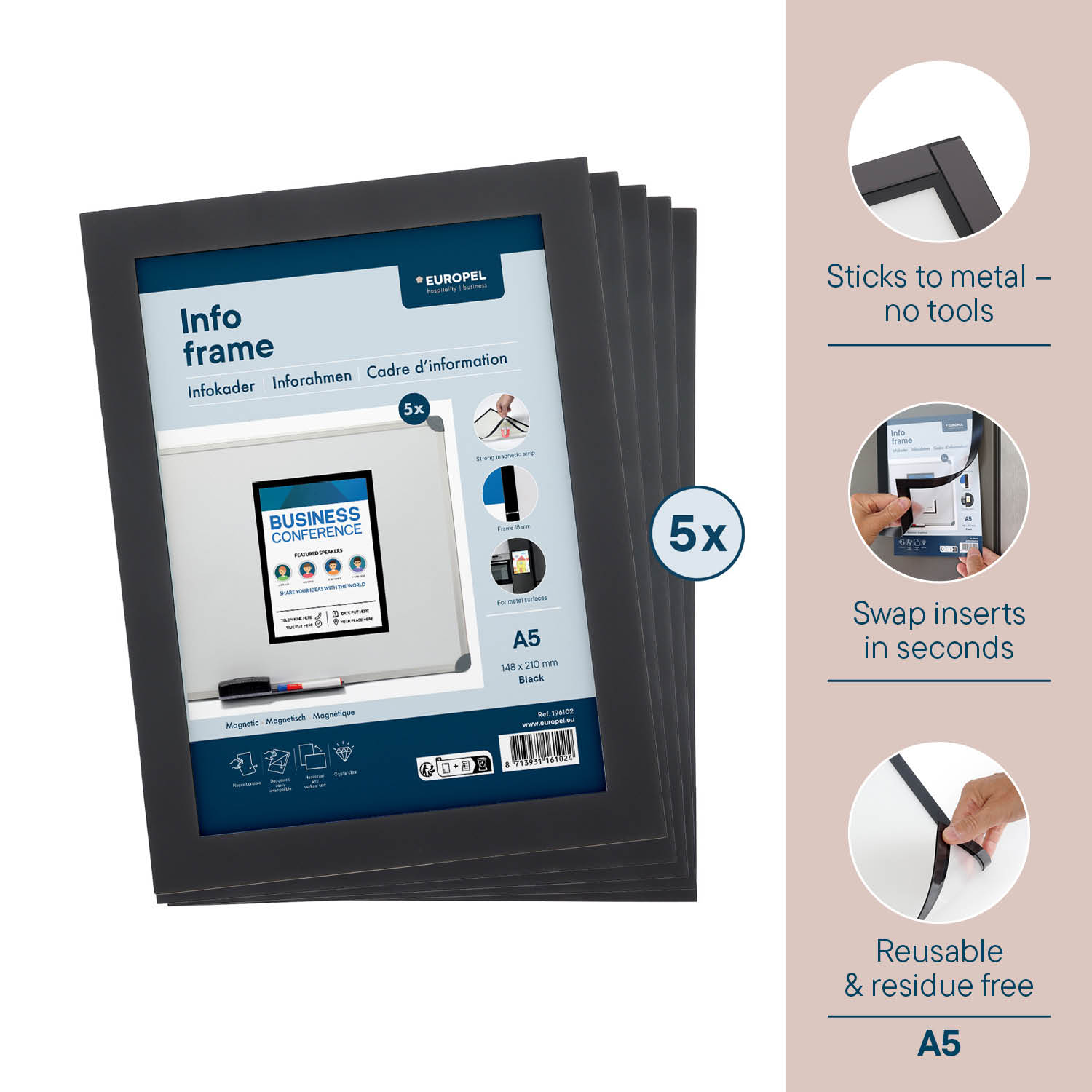 Europel Magnetic Info Frame Set of 5 pcs – A5 Black