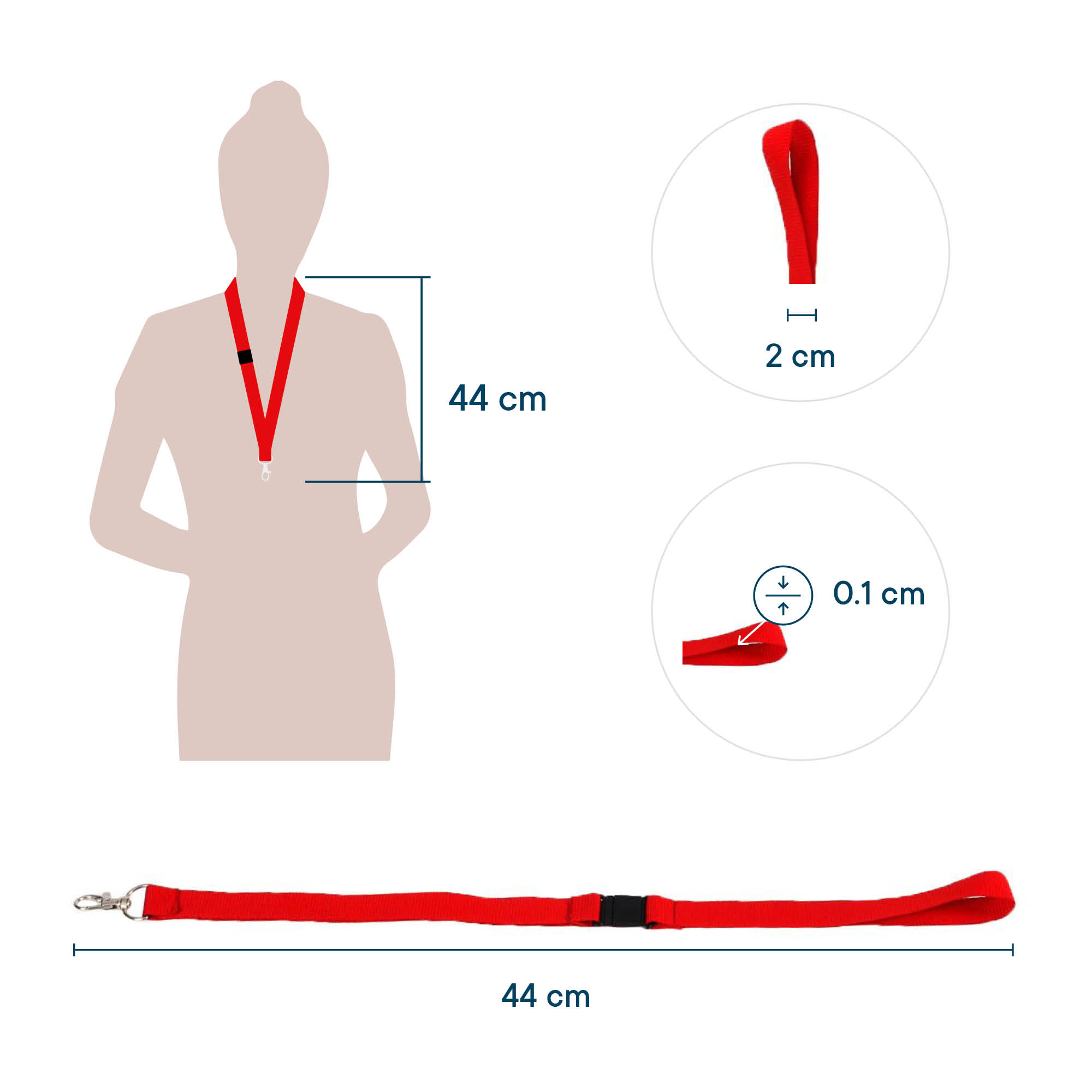 *Lanyard of textile for badge- or pass holders. *Equipped with a metal carabiner and plastic safety catch. *Also suitable as a keychain. *Length 44cm. Width 20mm. *Colour red. *Packed per 10 pieces.