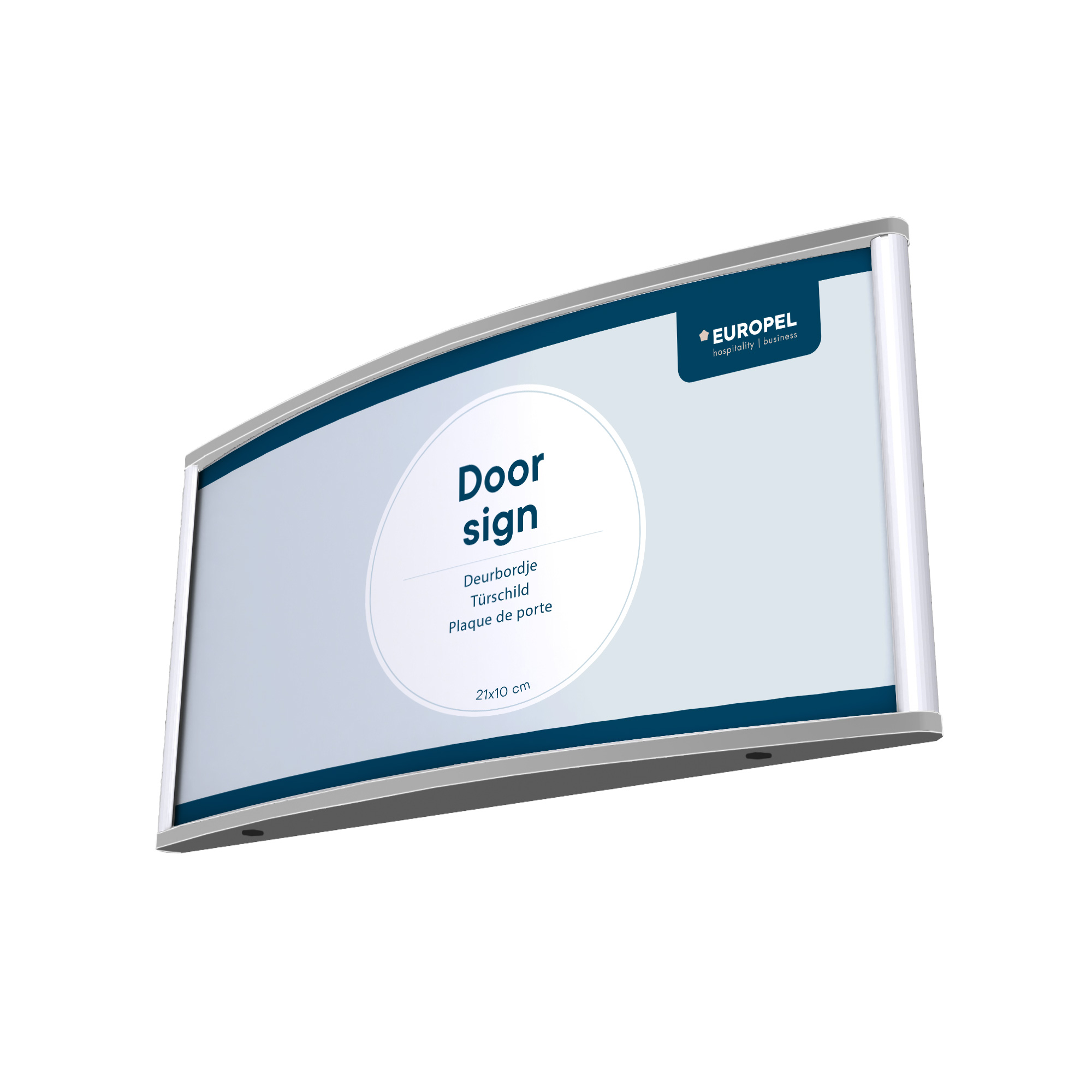 Simple and elegant door sign with slight curvature for a clear and easy way to show the way. The door signs can be easily screwed or glued and can be used in both landscape and portrait format. Changing the content can be done easily and quickly. The PVC cover ensures that the content is easy to read at all times. * PVC anti-reflex plate * Color silver* Includes mounting material (screws and double-sided tape)
