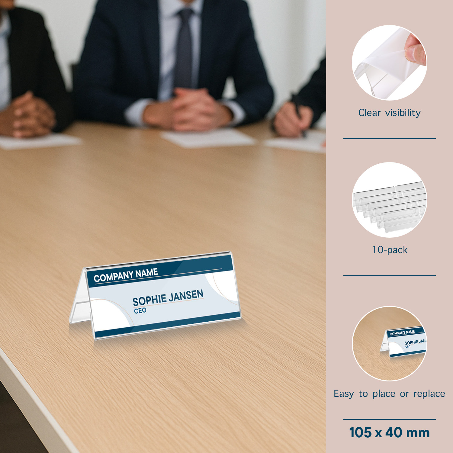 Europel Name Holder 2-sided L-Stand – 105 × 40 mm (A7 fold) – 10-Piece Set